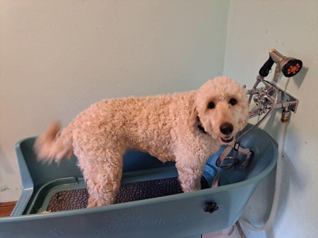 Badingen hjelper med å fjerne smuss, lukt og løs pels, samtidig som den gir pelsen glans og mykhet.